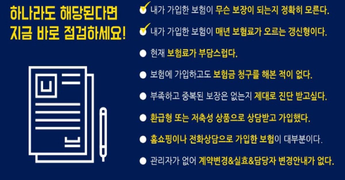 - 불필요한 특약이 들어있는지 확인하셨나요? 글자가많아서 다읽어보지도않고 서명하셨다면 꼭점검을 받아야합니다.