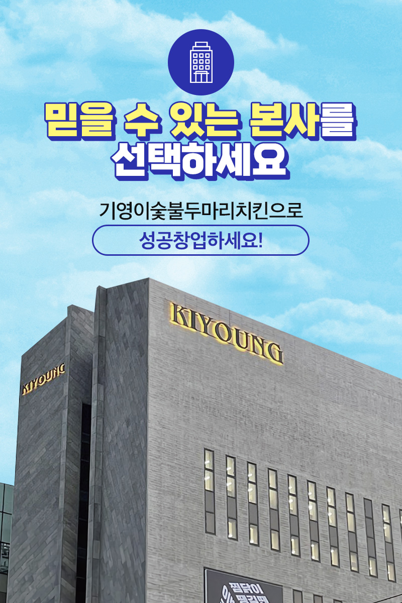 대한민국 프랜차이즈 중 가맹점 1,000개 이상 운영 경험이 있는 곳은 단 1%입니다! 월 매출 1억 돌파! 기영이 숯불 두 마리 치킨은 가맹점 1,000개 운영 노하우 90명의 분야별 전문가로 사장님의 매출