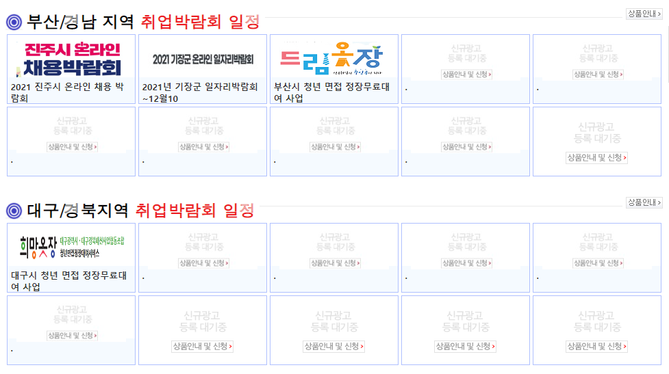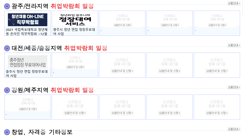 지역별로 열리는 취업 박람회 일정을 잘 정리하여 만들어져 있습니다.