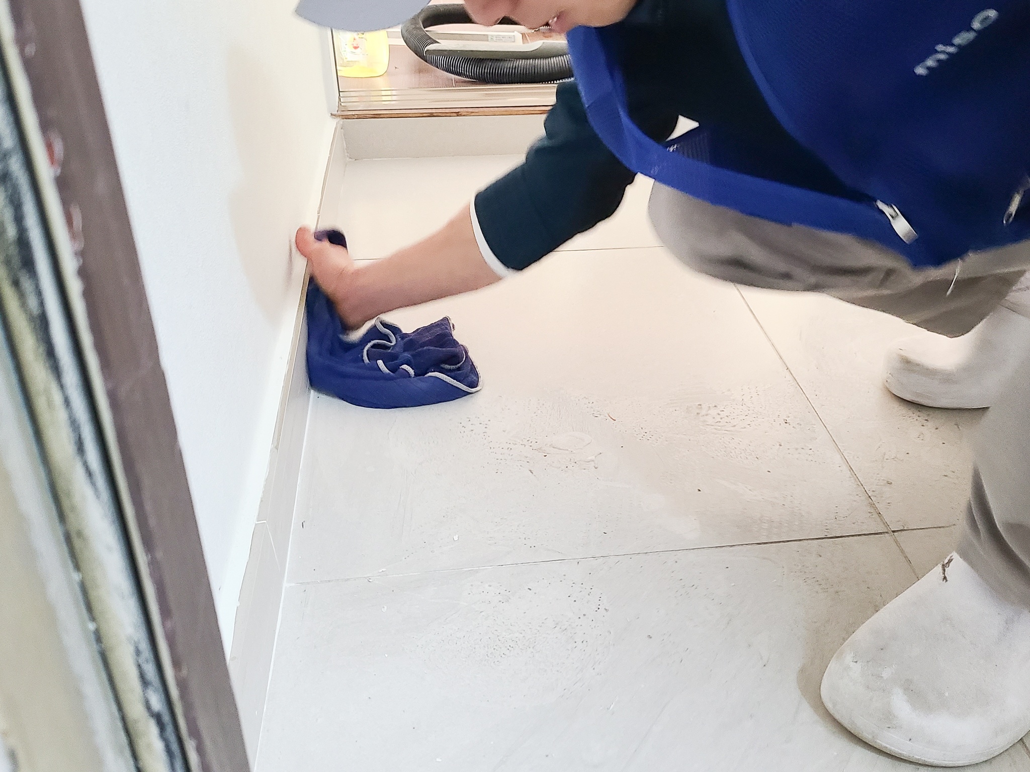 바닥, 몰딩 등 미세한 틈에 작은 입자의 미세먼지, 이물질이 들어가기 쉽기 때문에 약품을 도포해서 툭수 장비로 강력히 제거해 드려요.